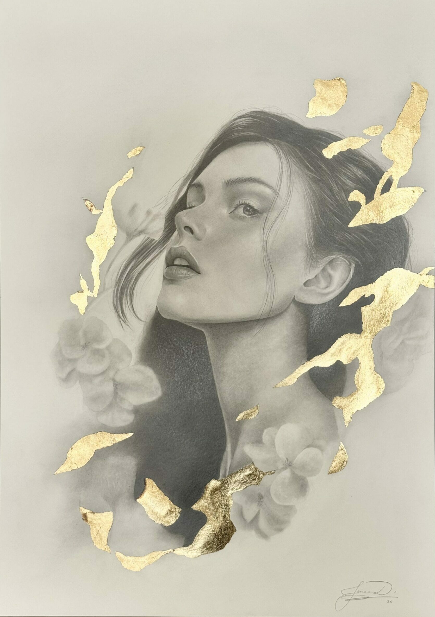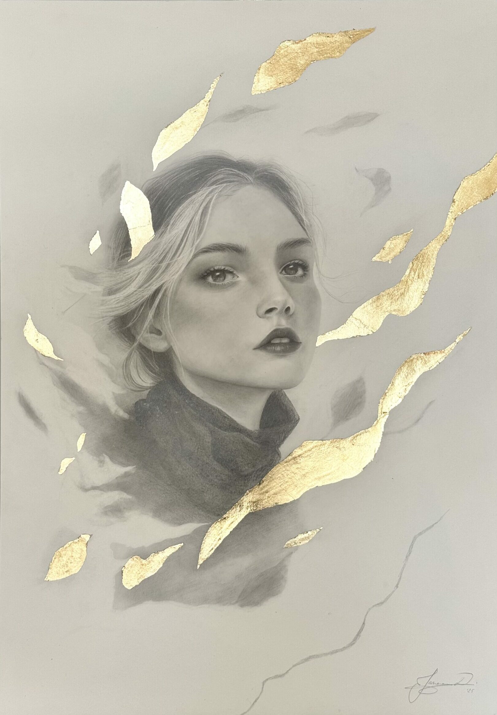 Graphite & gold leaf on Hahnemühle paper, 190 g/m²